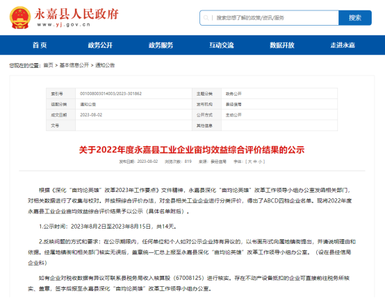 不以規(guī)模定標(biāo)準(zhǔn),而以“畝均論英雄”。近日,根據(jù)《深化“畝均論英雄”改革2023年工作要點(diǎn)》文件精神,永嘉縣深化“畝均論英雄”改革工作領(lǐng)導(dǎo)小組辦公室發(fā)函相關(guān)部門,對相關(guān)數(shù)據(jù)進(jìn)行了收集與校對。并按照綜合評價(jià)辦法,對全縣相關(guān)工業(yè)企業(yè)進(jìn)行分類評價(jià)。經(jīng)評定,歐拉姆被評定為2022年度永嘉縣規(guī)上工業(yè)企業(yè)畝均效益A類企業(yè)。